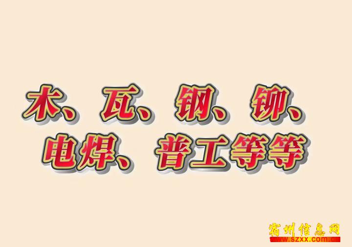 木、瓦、钢、铆、电焊、普工等