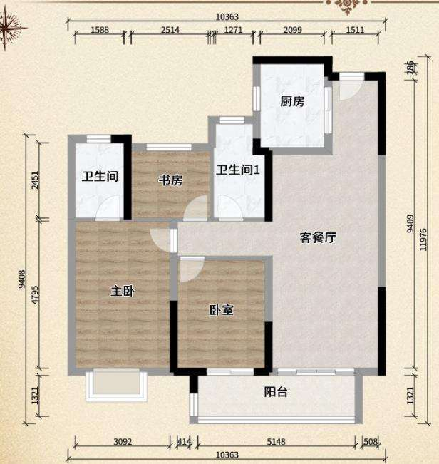 天元府毛坯103平三室两厅两卫64万满二