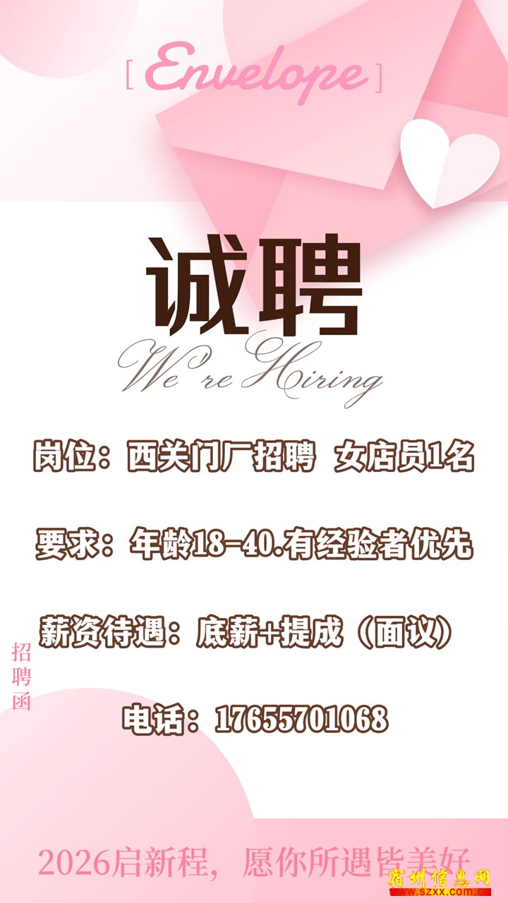 岗位:西关门厂招聘 女店员1名