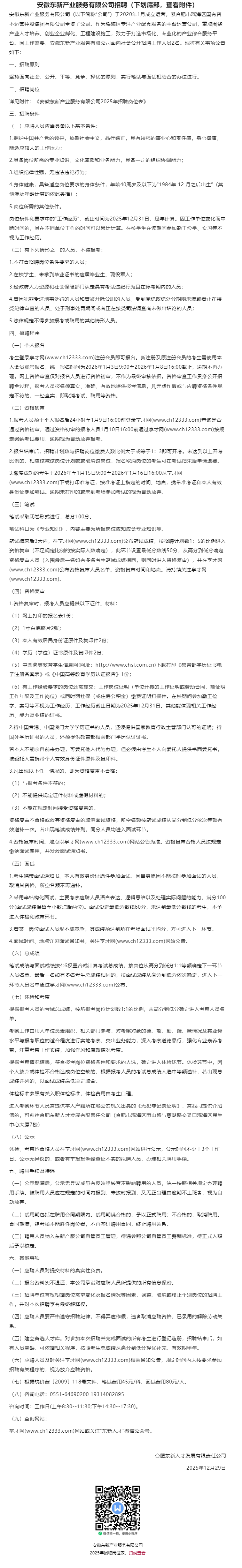 安徽东新产业服安徽东务有限公司26务有限年招聘计划~