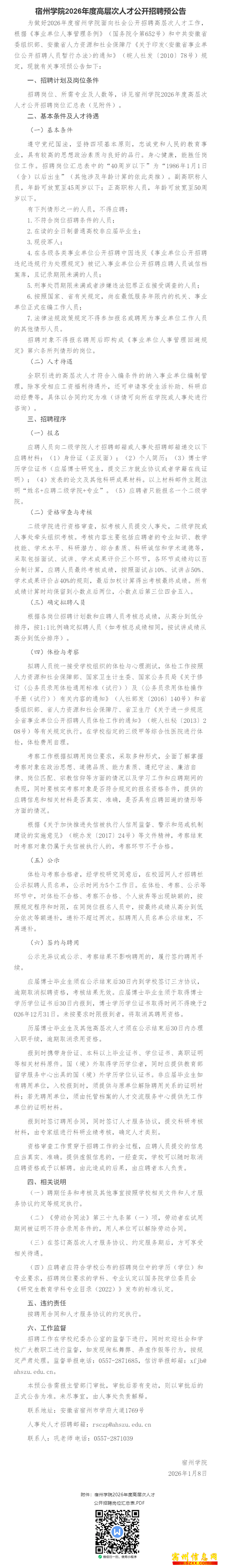 【宿州本地】拟聘49人!宿州学院2026年招聘公告~