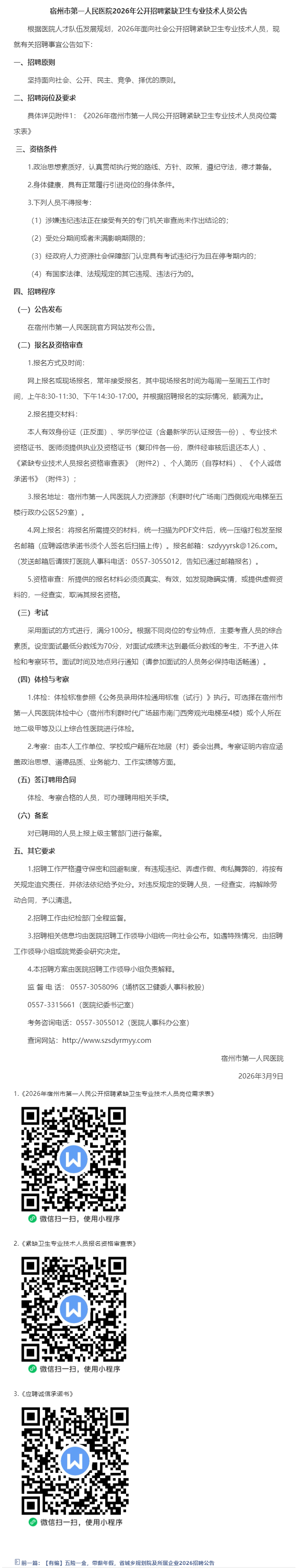 接受常年报名,招满为止,宿州市第一人民医院2026年公开招聘
