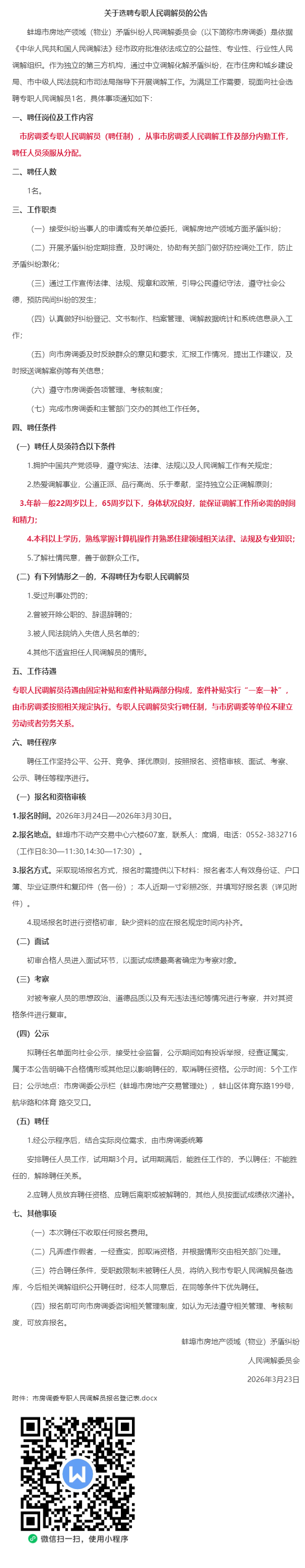65岁以下,热情,高精力,蚌埠市房调委‘人民调解员’